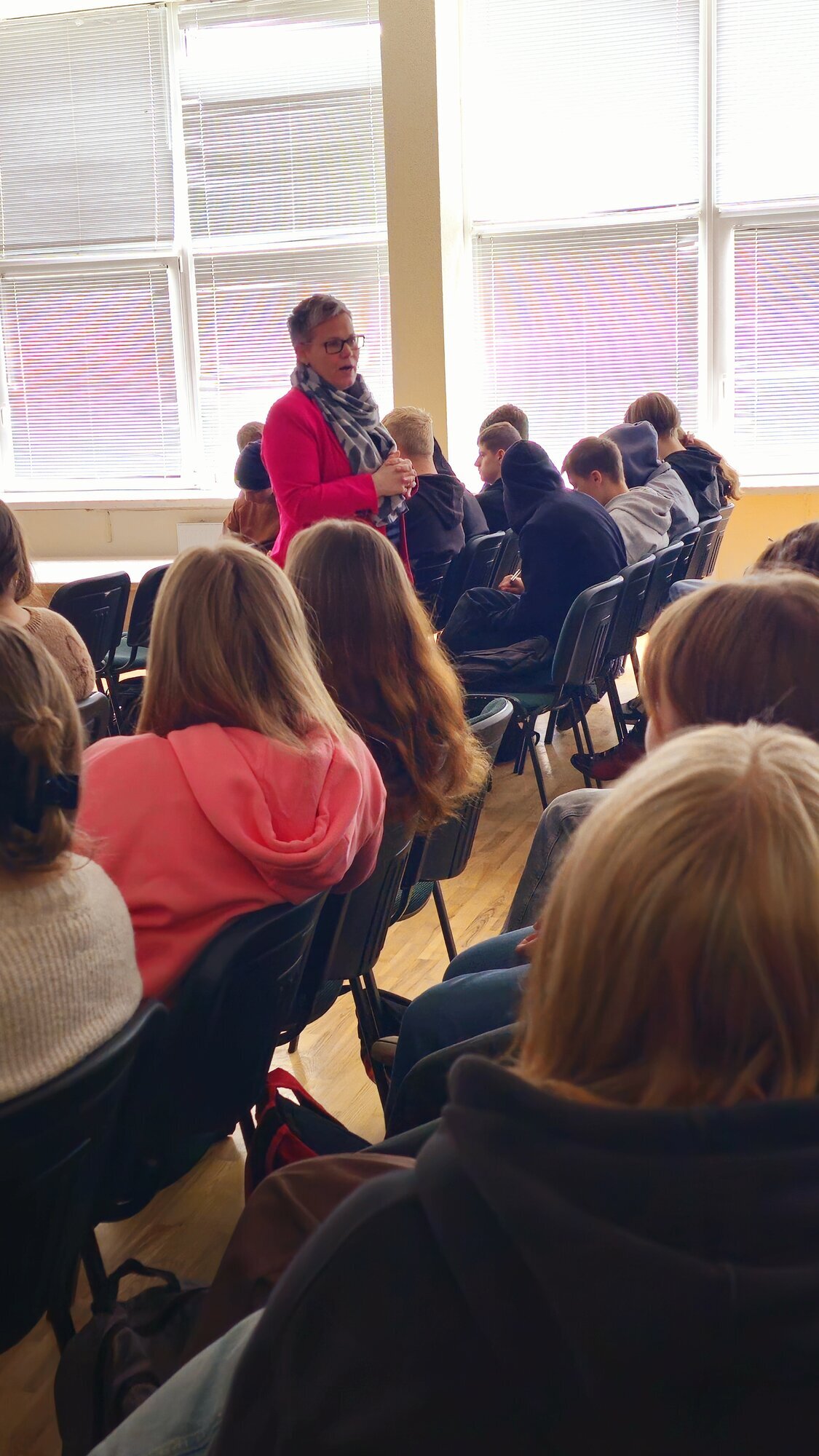 Sandra susitiko su I-III gimnazijos klasių mokiniais. Papasakojo apie ES ir NATO istoriją, Lietuvos prisijungimo kelią prie šių svarbių organizacijų, jų teikiamą naudą mūsų šaliai. Supažindino mokinius su diplomato darbu, apie galimybes tapti diplomatu. Mokiniai gavo žinių apie ES ir valstybių narių veikimą joje, paskatinimą daugiau domėtis europinėmis temomis, formuotis vertybines nuostatas, įgalinančias jaunus žmones būti aktyviais piliečiais, tikinčiais, kad gali inicijuoti pokyčius ES.